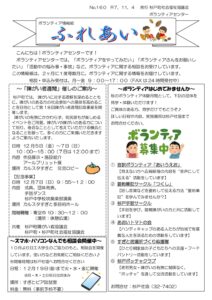 ボランティアセンターです。 ボランティア情報紙№160を発行しました。 今号は、○~「障がい者週間」催しのご案内~○~ボランティアはじめてみませんか~ 秋のボランティア体験月間実施中○~スマホ・パソコンなんでも相談会開催 […]